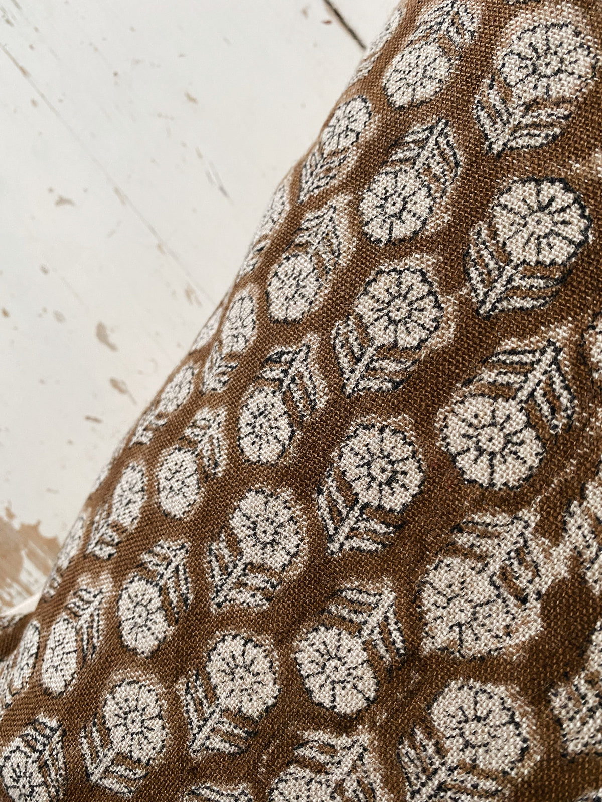 Introducing BETSY - a new botanical block print, featuring a small floral motif on linen with a rustic quality and texture. This simple and timeless motif stands out in any space adding cottage core charm and hand made artistry all at once. Hand block printed in India, this textile is truly unique and representative of hundreds of years of tradition and skill.